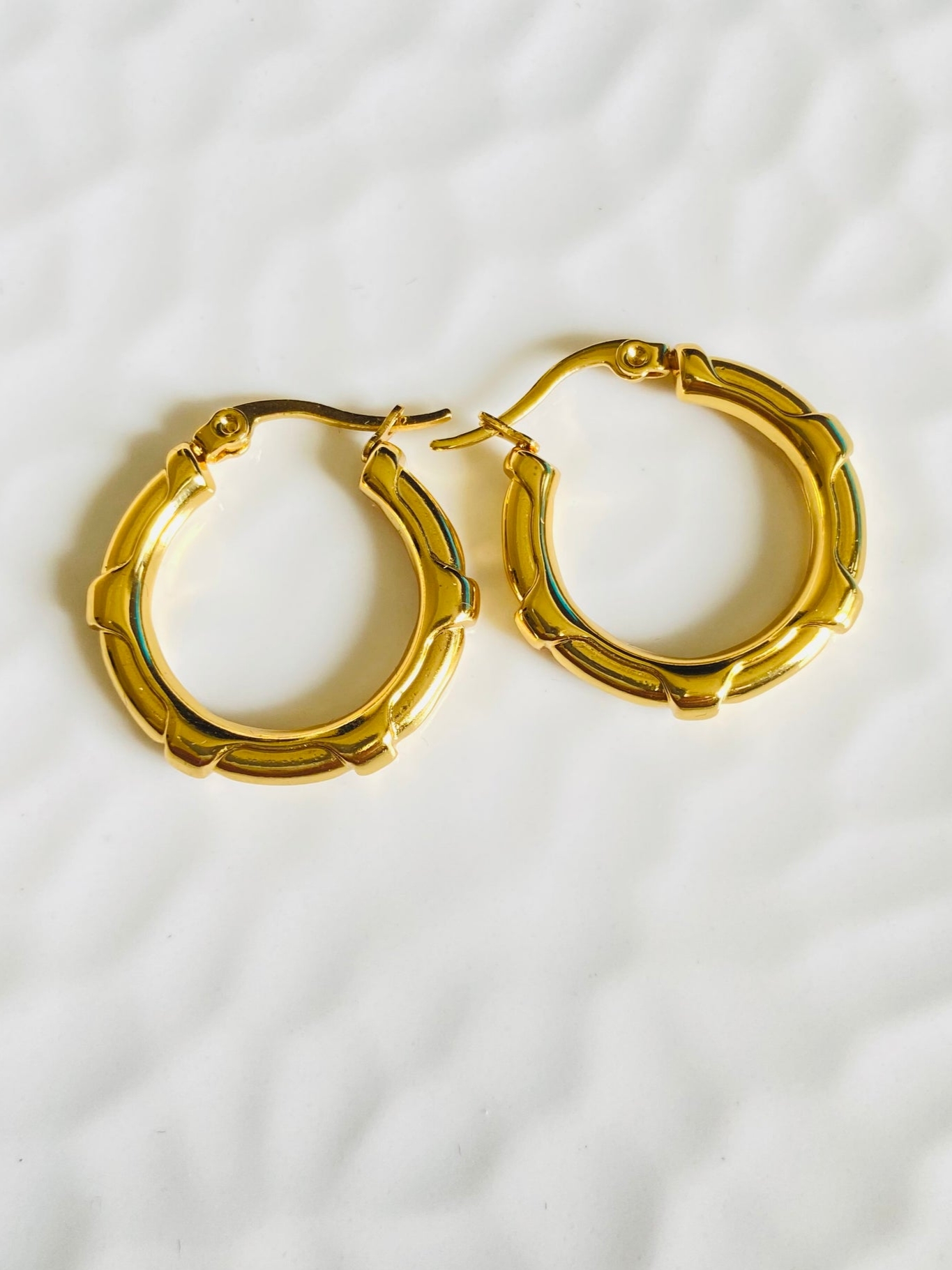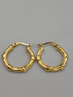 Bamboo Textured Gold Hoop Earrings