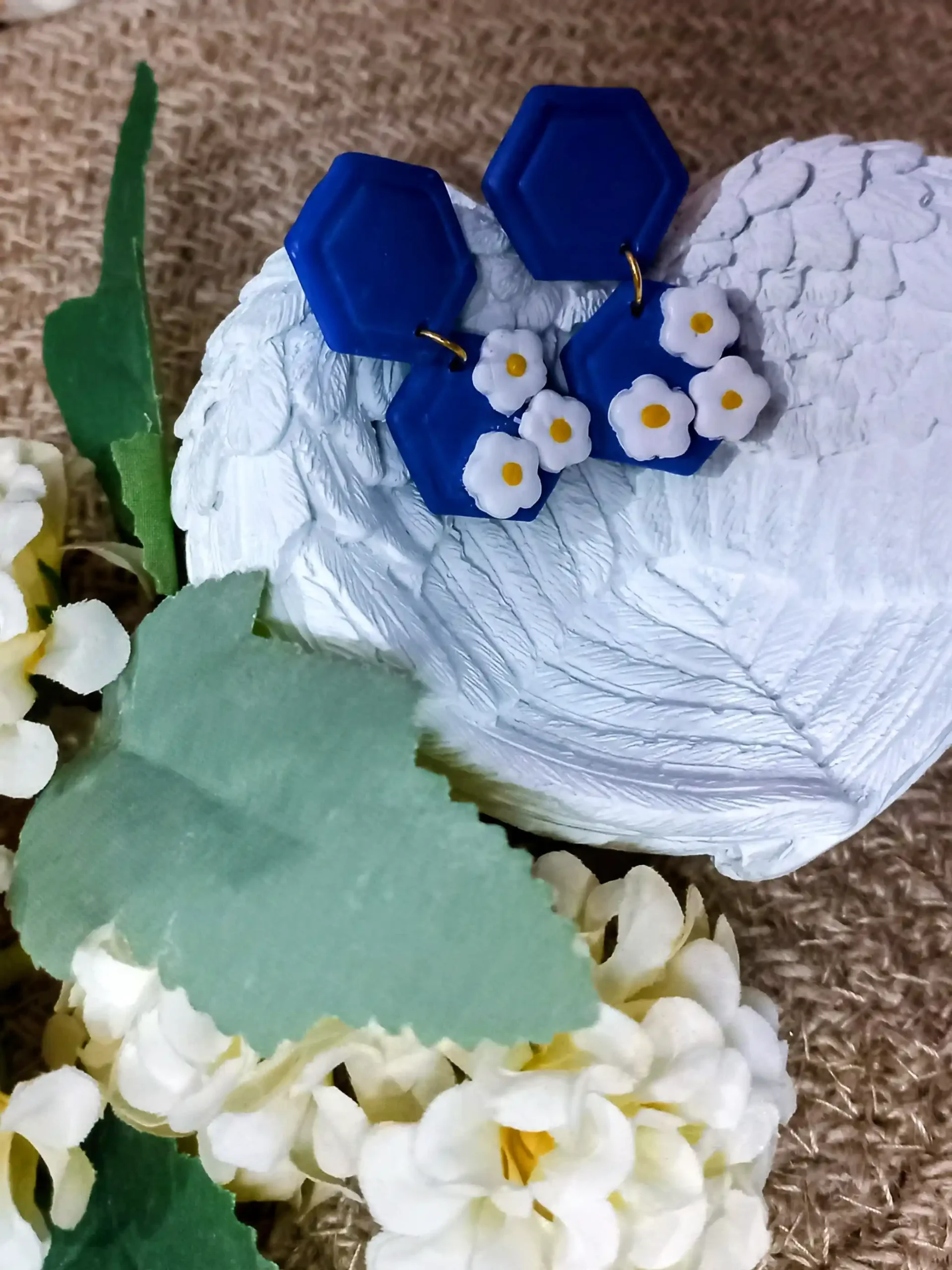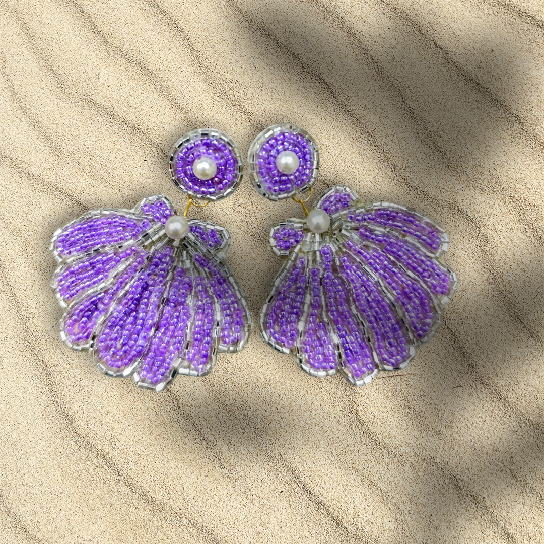 Hand-beaded daisy earrings with white petals and a yellow center.