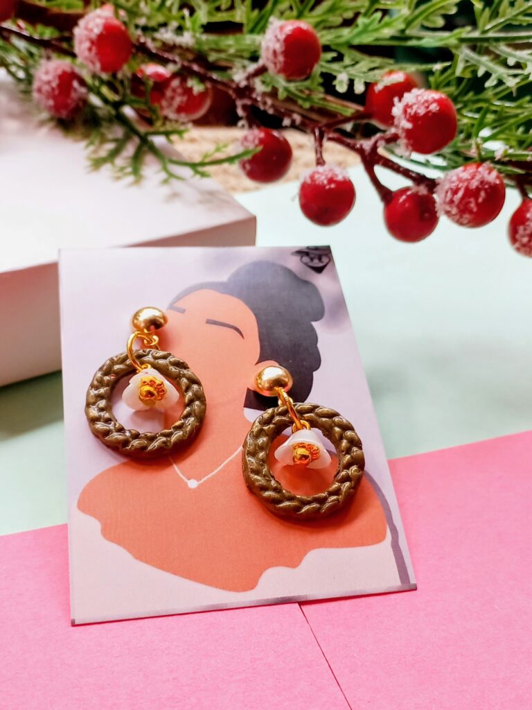 • Purple Pearl Blush Earrings with Cloth Embroidery