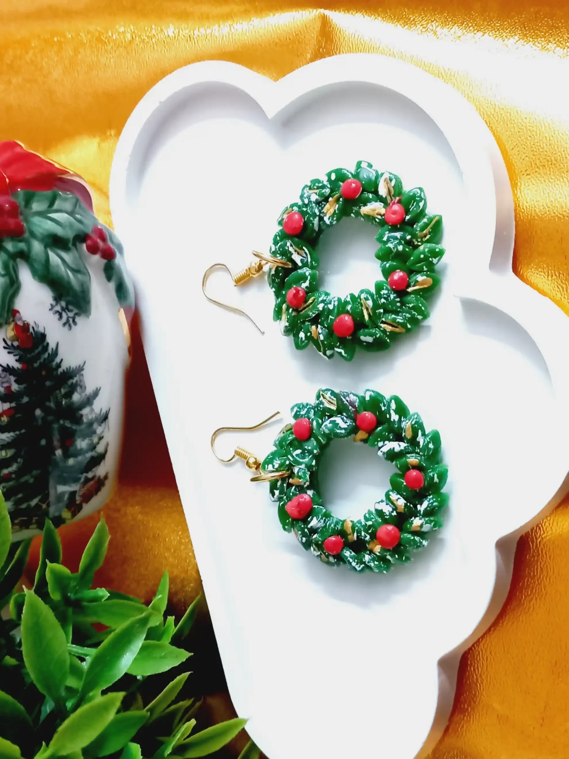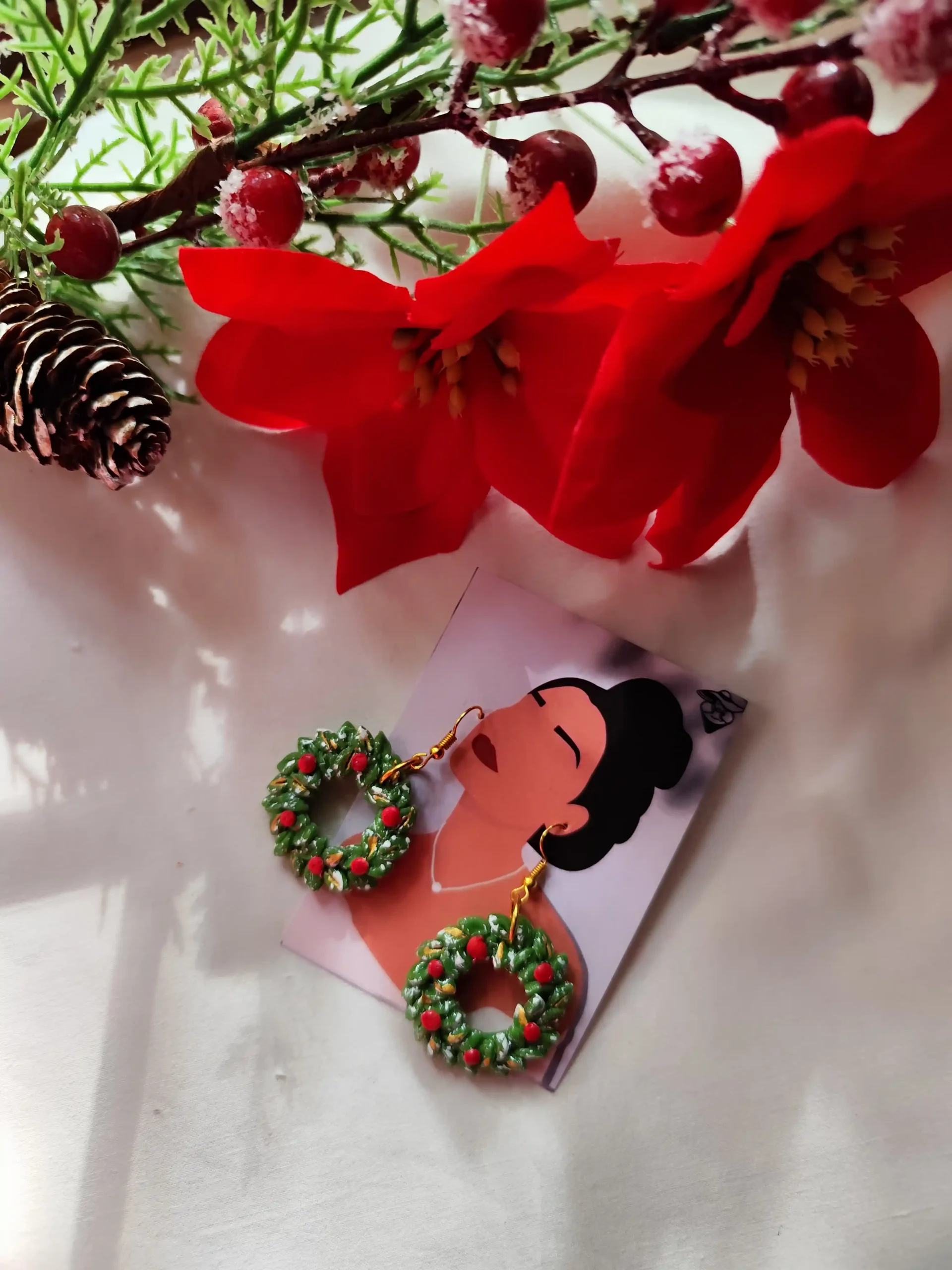 Bring the holiday spirit to your style with our handmade Christmas Wreath Earrings — a festive, lightweight accessory crafted for seasonal joy.