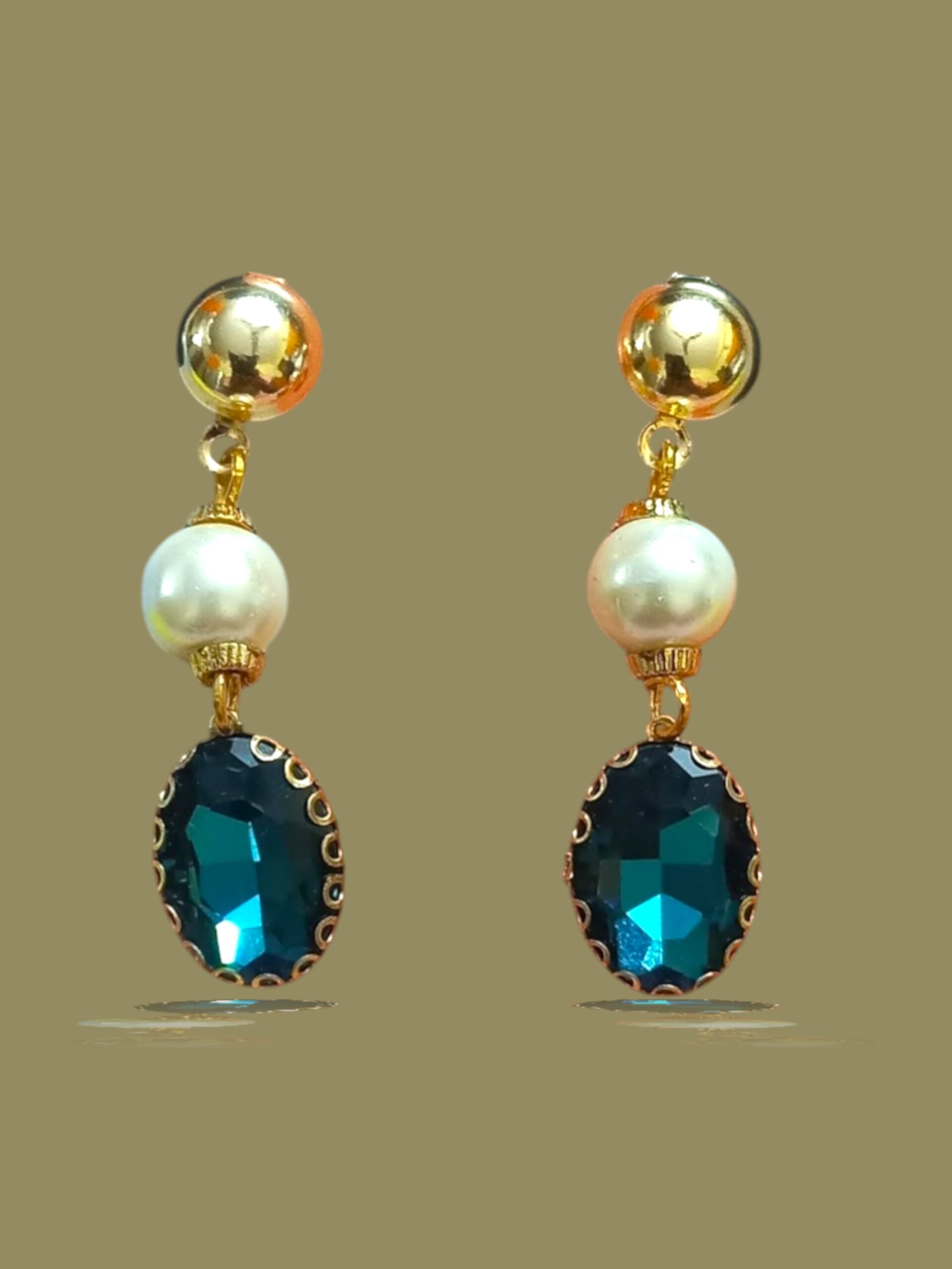 Bring a pop of sophistication to your ensemble with our Teal Radiance Drop Earrings. Designed with a polished gold stud, a lustrous faux pearl, and a striking teal blue enamel stone, these earrings blend elegance and vibrance effortlessly. The drop design adds movement and charm, making them ideal for both festive occasions and modern-day glam. Lightweight and comfortable for all-day wear, they’ll easily become your go-to accessory.