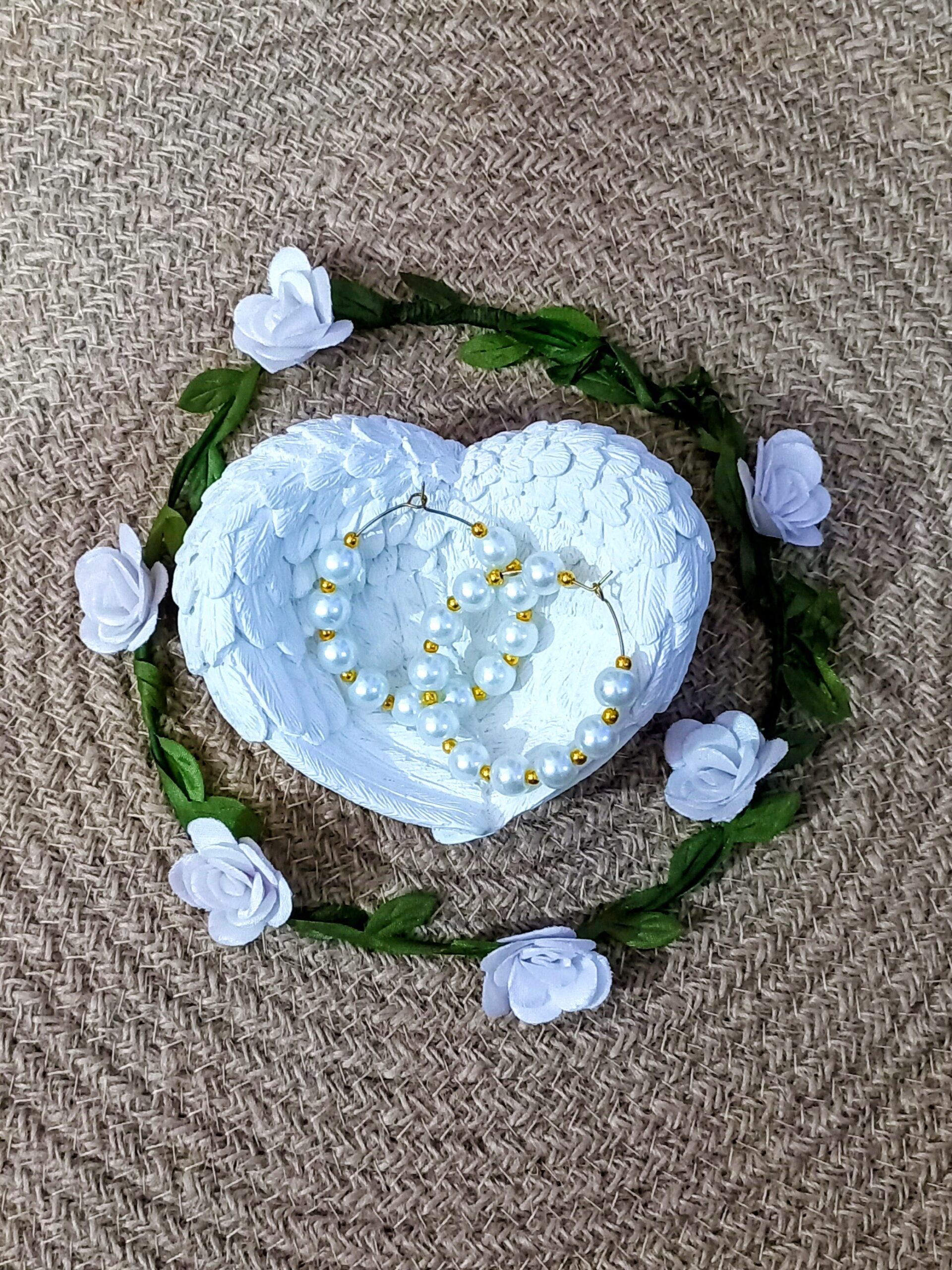 Classic elegance with a modern twist — the Golden Grace Pearl Hoops feature glossy white faux pearls beautifully accented with golden spacer beads. Designed in a timeless hoop silhouette, these earrings offer a polished look that works perfectly for both festive occasions and everyday sophistication.