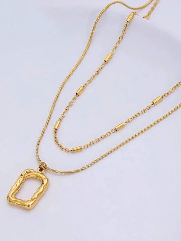 Elegant dual-layer gold necklace with abstract textured pendant and anti-tarnish finish—perfect for effortless everyday style.